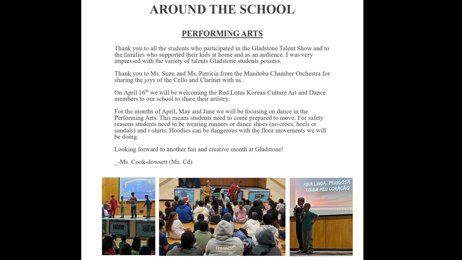 I am looking forward to the year of creative exploration as we learn through the Performing Arts. On this page you can see important performance dates as well as photos and videos of our learning!