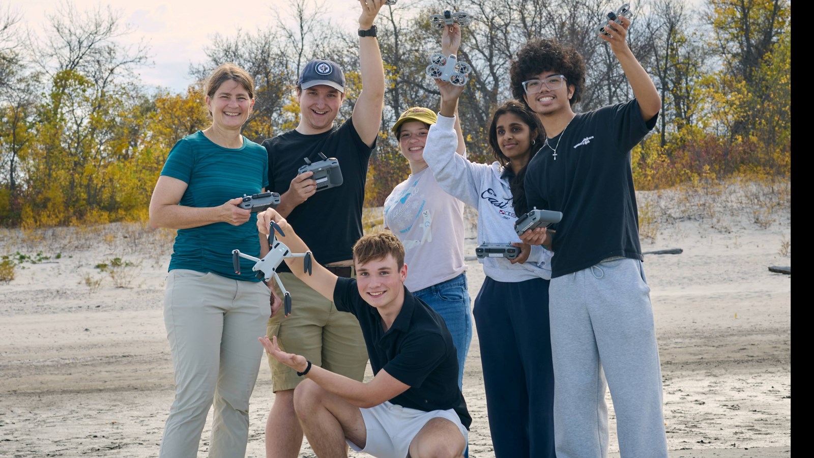 Students from Kelvin High School are participating in the Science Experiential Aerial Research (SEAR) Program in order to learn how to operate drones and use technology, imaging systems, and AI tools to collect data in order to tackle the problem of litter. The Winnipeg School Division has partnered with Volatus Aerospace and the University of Manitoba to use drones in a Waste Management Project. The program is designed to engage students by using technology to address environmental impacts of pollution and contribute to solutions that can better help communities improve their waste management. After the first orientation session and drone training, the students went out to Patricia Beach to conduct a mapping mission using aerial data. The drone footage from the multispectral camera on the drone can be analyzed to give important information about the waste materials as the near infrared light reflects differently off metal, plastic and cardboard. This can be used to identify the different types of litter on the beach using the aerial map from the drone. The students set up a ground-truthing data grid with various types of litter on the beach and learned to pilot micro and small remotely piloted aircraft systems. The next phase will be to analyze the data maps using machine learning and a software platform that they will train to identify the different materials by matching their photos with the drone footage.