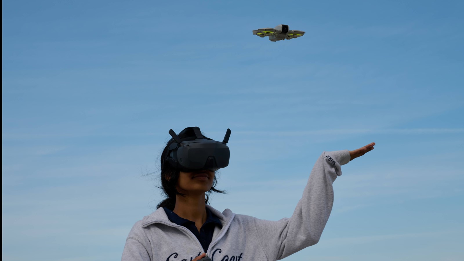 “One of the highlights was using a first-person view headset, which allowed me to see exactly what the drone was capturing in real time. It challenged my balance and coordination skills, and the experience was very enjoyable. Overall, it gave me a better perspective on how drone technology can aid environmental monitoring and protection.” Myrah Gupta, Grade 11